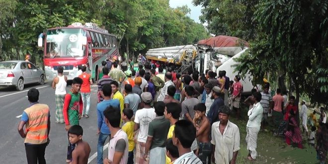 মঙ্গলবার সকালে মুলিবাড়ী এলাকায় এ দুর্ঘটনা ঘটে। নিহত চালক আব্দুর রহিম (৪০) বগুড়া জেলার শেরপুর উপজেলার বাসিন্দা বলে জানা গেছে। আহতদের পরিচয় জানা যায়নি।
